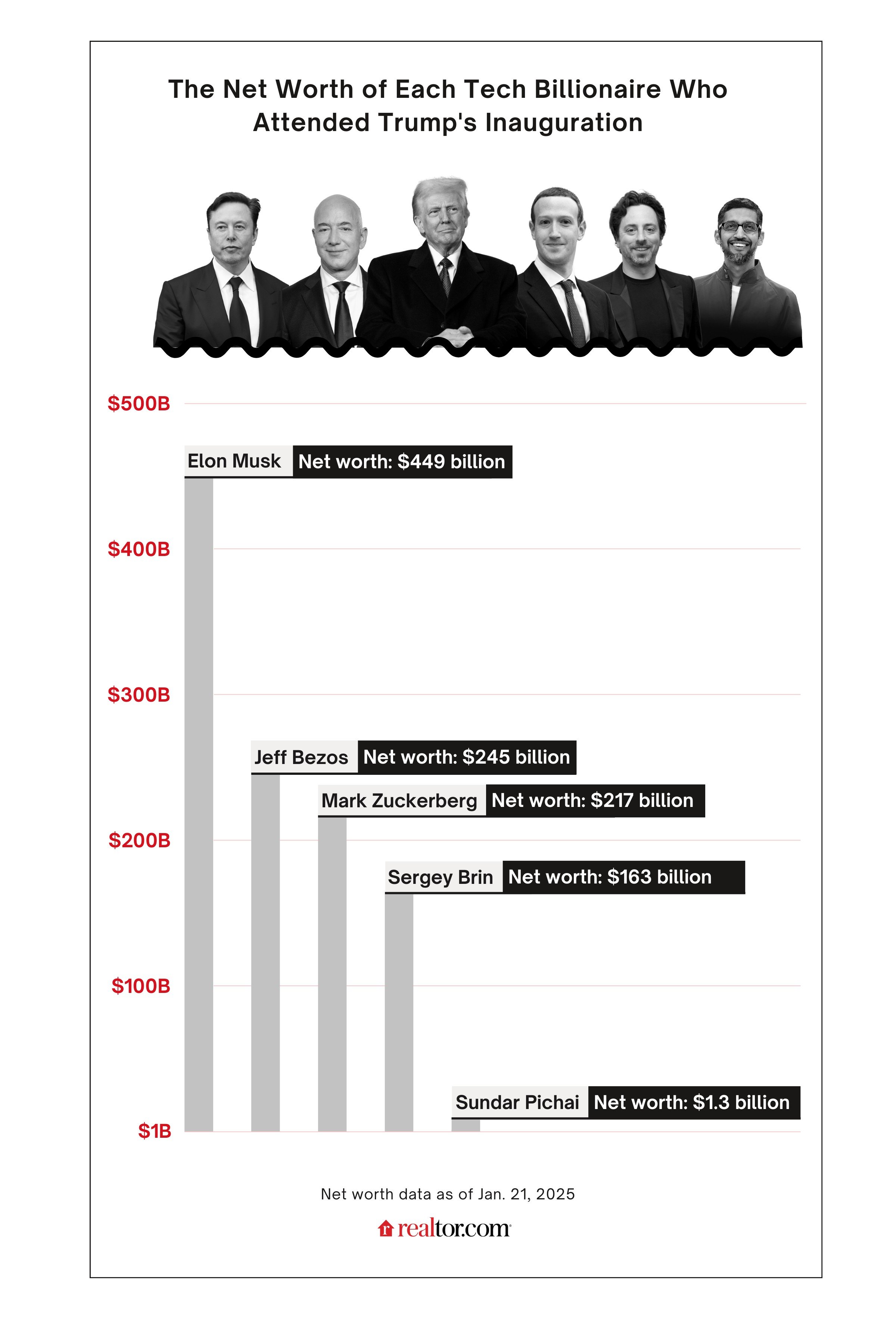 President Donald Trump‘s second inauguration was attended by a host of political heavyweights from around the world. But in a much more telling sign of his powerful allegiances, those political supremos took something of a backseat to another, very influential group of guests: five of the world’s richest tech billionaires.
